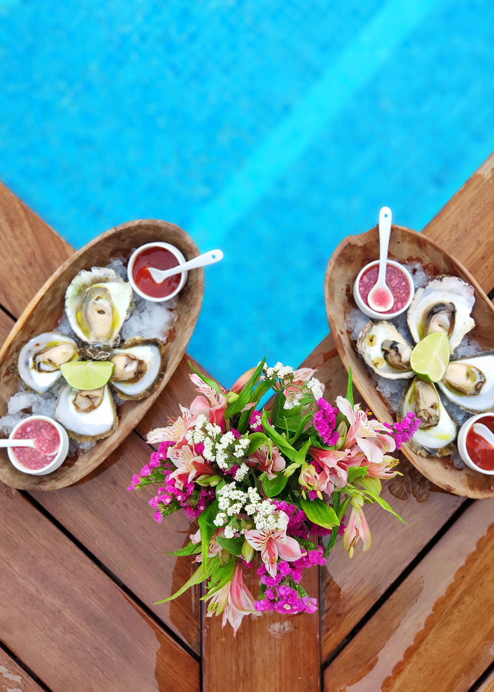 En taze deniz mahsullerinden rafine bir seçki ile hazırladığımız menümüzde soğuk başlangıçlar, havuzumuzdan canlı olarak istiridye, canlı Istakoz ve ara sıcaklarımız lezzetli salatalarımız ve ana yemeklerimizin yanı sıra, ev yapımı özel içecek ve kokteyllerimizle de üst düzey misafir memnuniyetiyle hizmet veriyoruz.