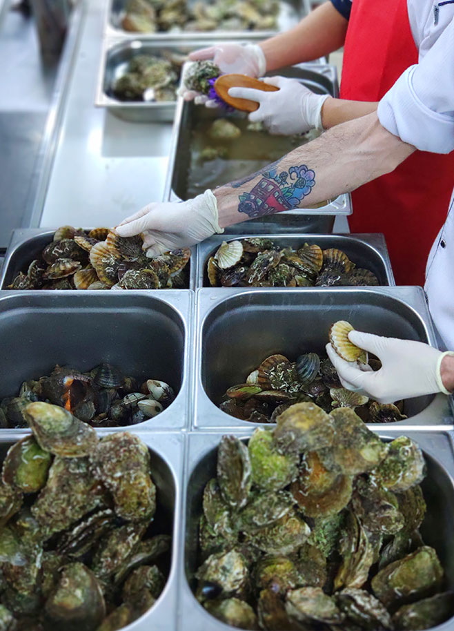 Canlı istiridyeler ve ıstakozlar, restoranın içindeki özel havuzlarda özenle muhafaza ediliyor. Mavi kuyruk karides, ahtapot ve kalamar ise doğrudan Ege’nin kendi sularından temin ediliyor; mutfakta kesinlikle ithal ya da dondurulmuş ürün kullanılmıyor.